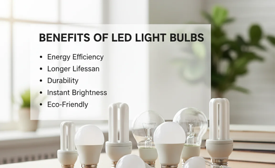 Swapping to LED light bulbs brings shiny benefits! First, they are energy-efficient, using up to 75% less energy than regular bulbs. That means lower electricity bills—talk about bright savings! Next, LEDs last a long time. They can shine for up to 25,000 hours. That’s like lighting up your life for years without changes. Plus, they are tough. No more worries about dropping bulbs and losing your cool. Here’s a quick look: