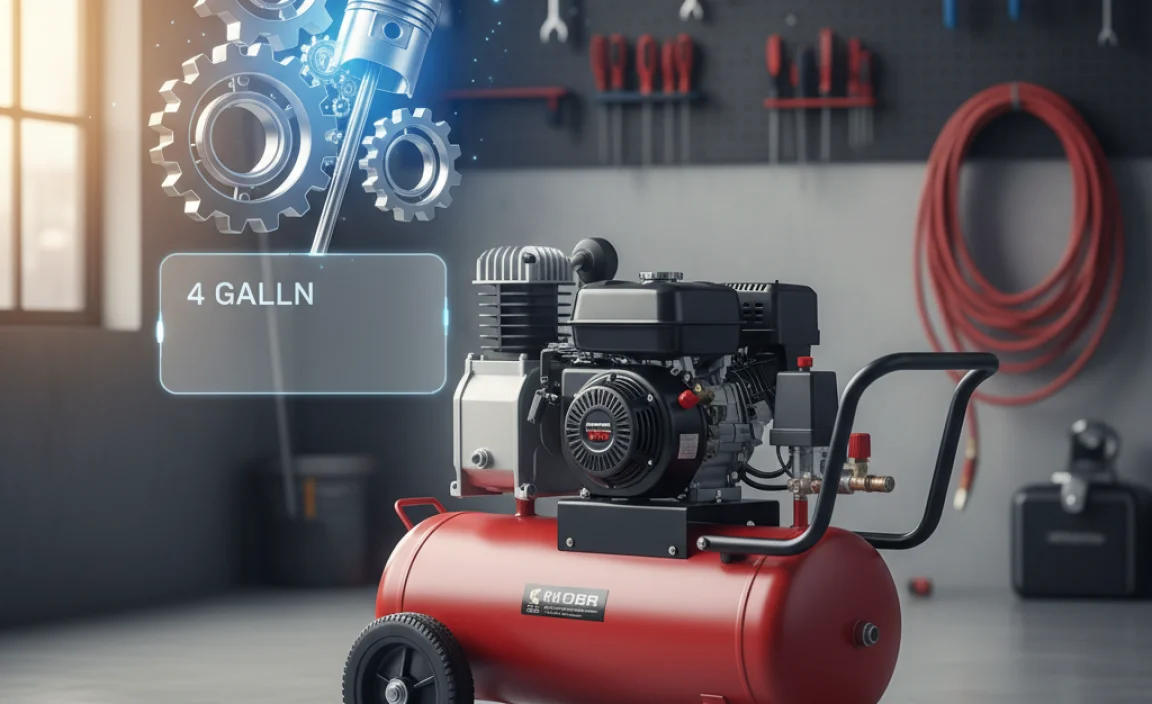 Before we dive into the specifics of gas-powered 4-gallon models, let’s quickly cover what makes an air compressor tick. It’s essentially a machine that takes air from the atmosphere and squeezes it into a storage tank. This pressurized air can then be used to power various tools.