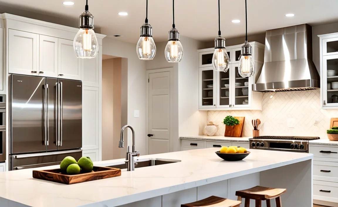 Choosing the right pendant lights can feel like picking candy at a sweets shop. You want everything to fit just right! First, think about the size and scale of the fixture. It should match your kitchen; tiny lights on a big island may look like Christmas ornaments! Next, consider the height and placement. Hang lights at about 30 inches above the counter for the best shine, unless you’re really tall or have super fancy hair! Aim for a well-lit space that adds charm. Enjoy dangling lights that sparkle as much as you do!