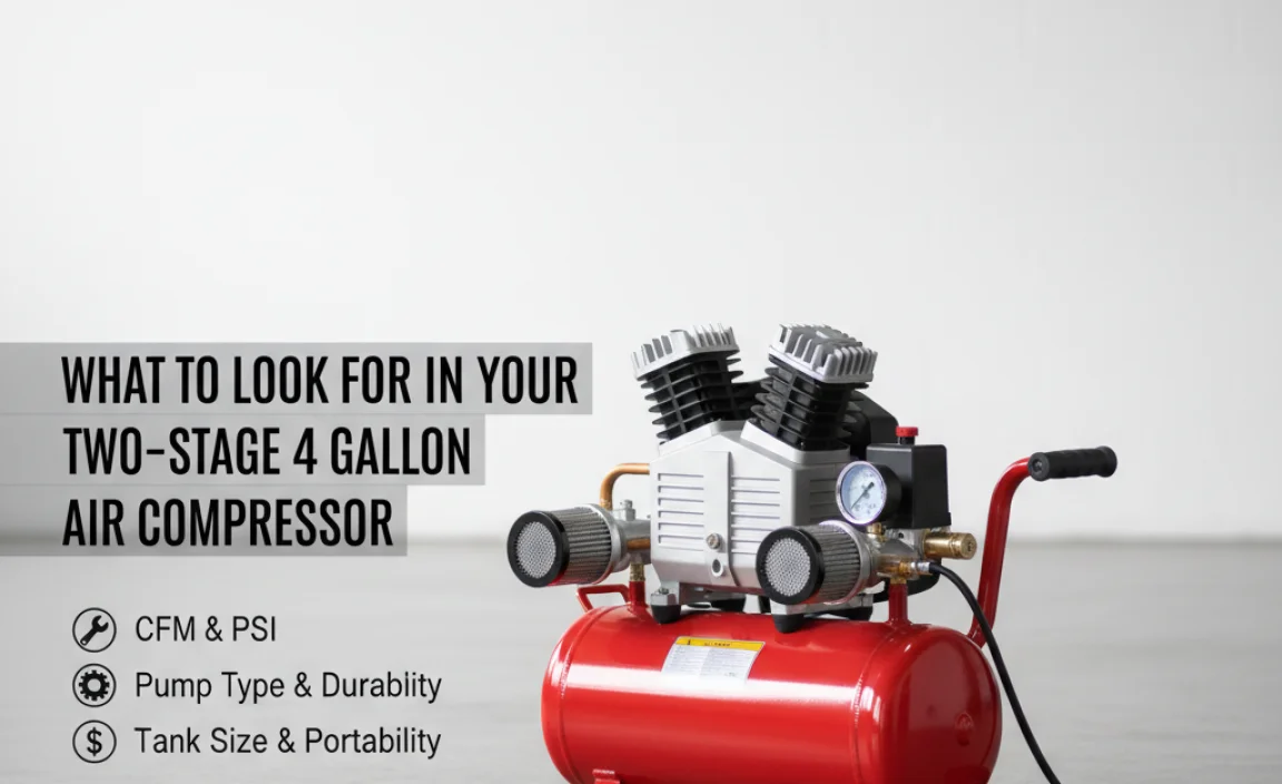 For a two-stage 4-gallon compressor, you’ll generally find models rated to deliver around 4-6 CFM at 90 PSI. This is more than enough for most DIY tasks. Always check the specifications for the tools you plan to use and make sure the compressor meets or exceeds their CFM requirements.