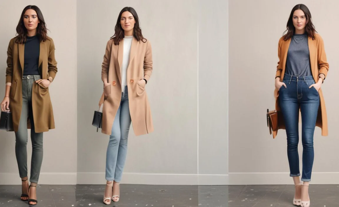 - Longer Coats: Trench coats, duster coats, and long cardigans that fall to mid-thigh or below can help create a long, lean silhouette.
