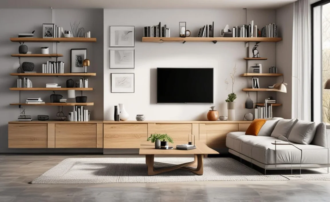 Consider the style and material of the shelves. Wood, metal, and glass each have their own look. They also have different strengths. Accessibility and safety are important too. Think about who will use the shelves. Place them at a height that is comfortable for everyone. With careful planning, you can create a living room that you love.