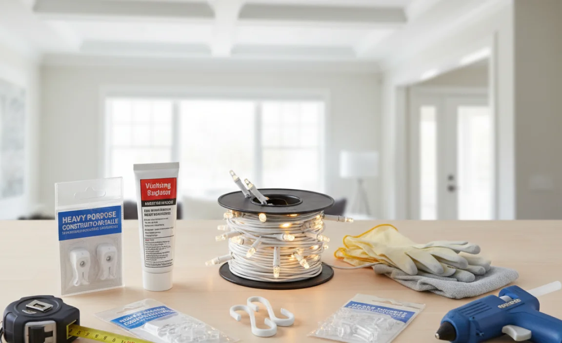 Cable management clips are your new best friends for hanging string lights! These little helpers keep your cords tidy and safe. They stick to the ceiling and guide your lights where you want them. Want an elegant twist or a straight line? You get to choose!