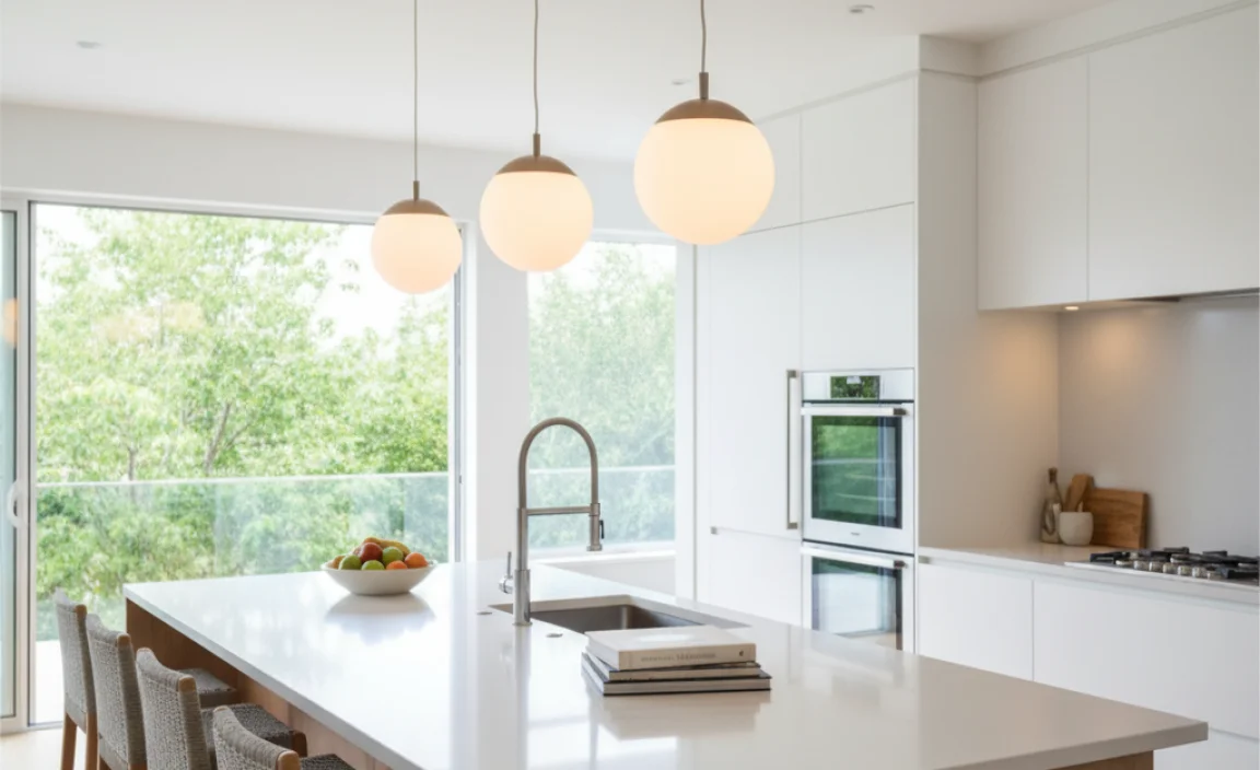 Choosing the right lights for your kitchen island can be fun! First, think about your kitchen style. Do you like modern or classic decor? Match your lighting to your island’s look. Next, consider the height of your pendant lights. They should be low enough to light up the island but high enough not to bump your head — ouch! Typically, hang them 30 to 36 inches above the island. Finally, make sure there’s enough space between each light to keep the area bright without looking cluttered. Remember, good lighting is like good food; it makes everything better!