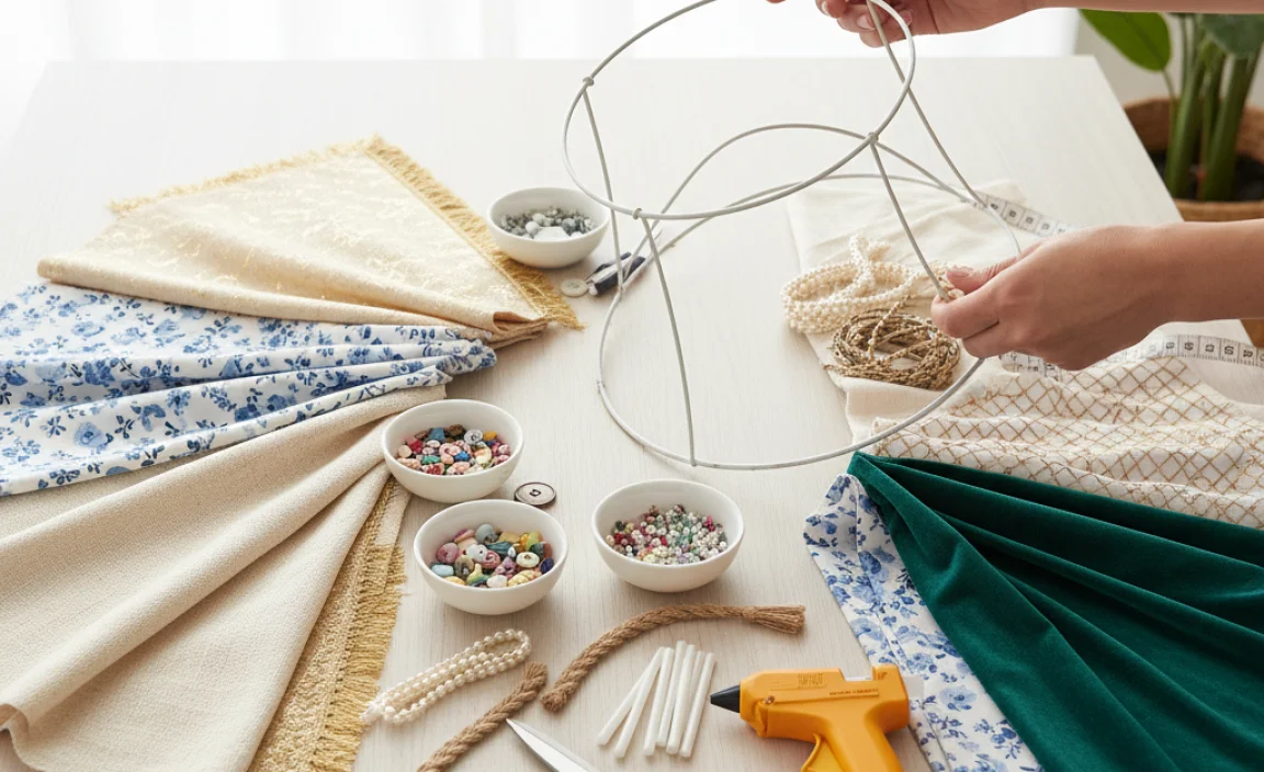 Picking the right materials is key for a lampshade redo. Choose fabrics like cotton or linen for a soft look. They’re easy to work with and come in many colors. You might also like synthetic options for durability. Don’t forget to grab some essential tools! Check off this list: