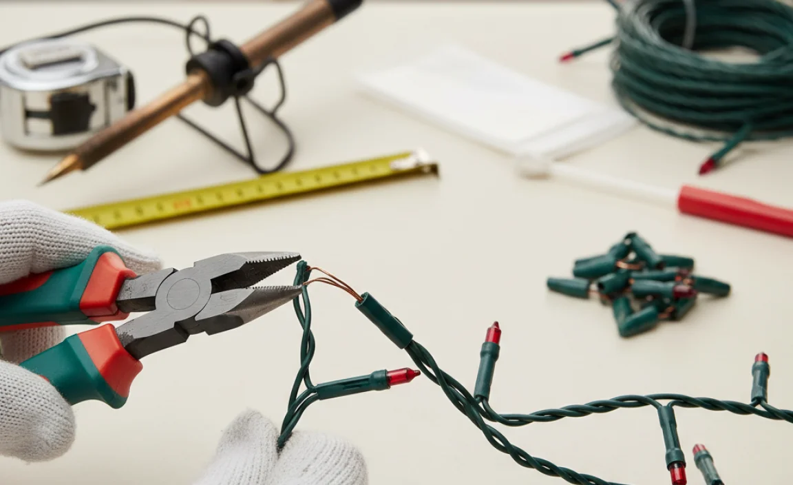 You’ll need wire cutters, electrical tape, and pliers to shorten Christmas lights safely.