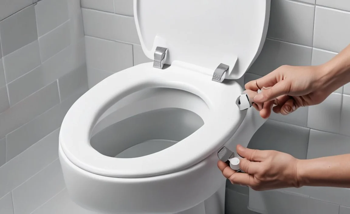 Removing a toilet seat may seem tricky, but it’s simple. First, check under the seat for bolts and nuts. Most seats have two. You often need a screwdriver and sometimes a wrench. Remember to hold the nut underneath while turning the bolt. If the bolts are rusty, soaking them in vinegar can help loosen them. Did you know a squeaky toilet seat is a sign it needs fixing? Learning how to unscrew it can save you money on repairs!