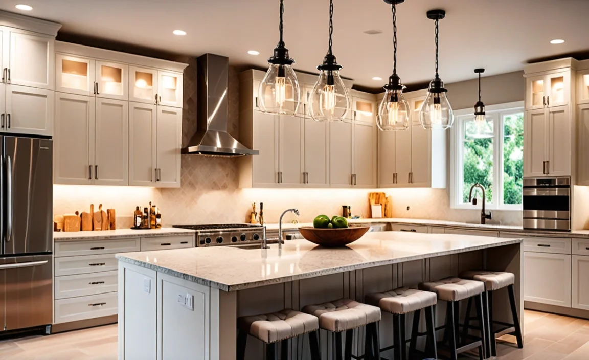 Mixing these lights makes the kitchen feel inviting. Remember, too much light can be blinding! Aim for balance. A cozy kitchen is where memories are made—like when you burn the toast. Oops!
