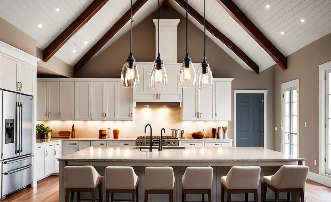 Pendant lighting can transform your vaulted ceilings into a stunning focal point. These lights hang beautifully, drawing the eye upward. Imagine a warm glow illuminating your space, making it feel cozy and inviting. The right pendant fixture adds style and charm. Choose options that match your room’s theme and size. Did you know lights can also enhance the room’s overall height? Experiment with colors and designs to find the perfect fit for your home!