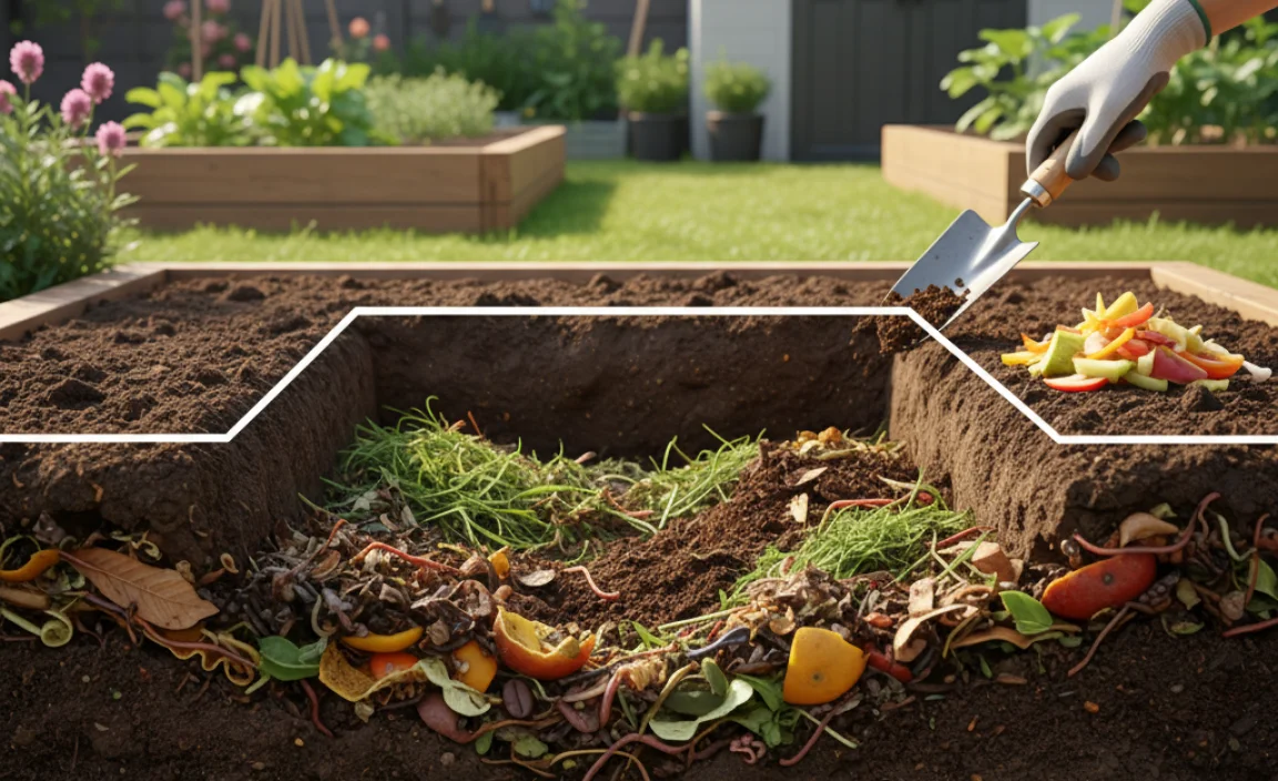 Pit composting, sometimes called trench composting or in-ground composting, is basically burying your organic waste directly into the ground. Instead of building a pile or using a bin, you dig a hole or a trench, add your compostable materials, and then cover them up with soil. Over time, the materials decompose right there in the earth, creating nutrient-rich compost that benefits the soil directly. It’s one of the oldest and most natural forms of composting, relying on the microorganisms already present in your soil to do the hard work.