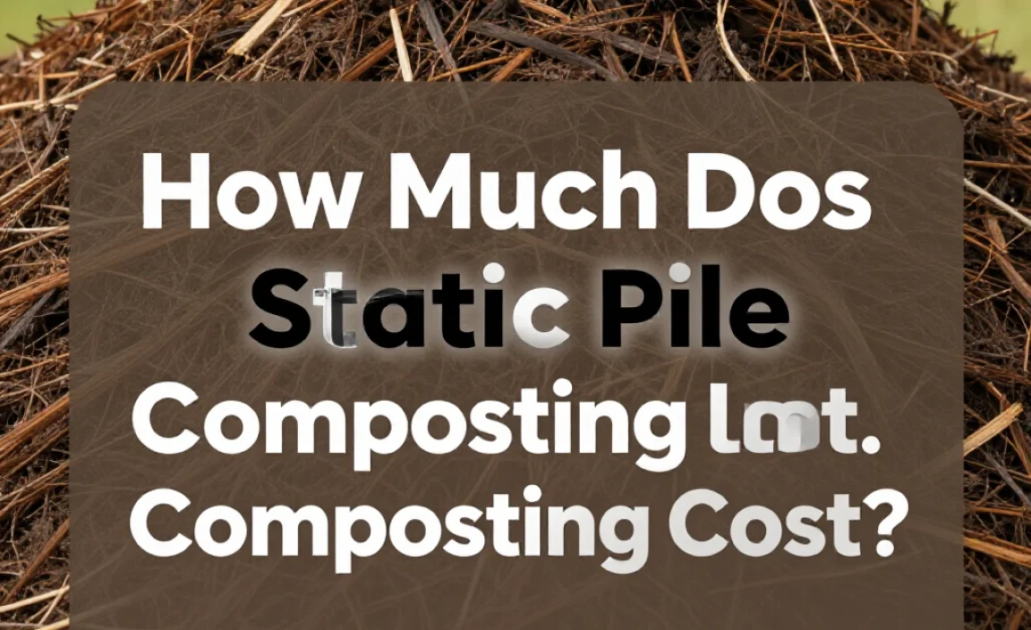 Answer: The static pile composting cost is low. Most materials are from home or garden. Tools like a pitchfork or tarp might cost $30 in total. It’s cheaper compared to buying ready-made compost.