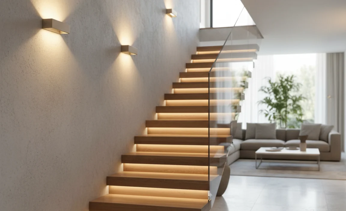 Clever lighting can brighten up even the dullest stairs. Imagine walking downstairs and seeing a warm glow from a beautiful wall sconce. This simple touch can add style and safety to your home. Did you know that good lighting can even help you avoid accidents on the stairs?