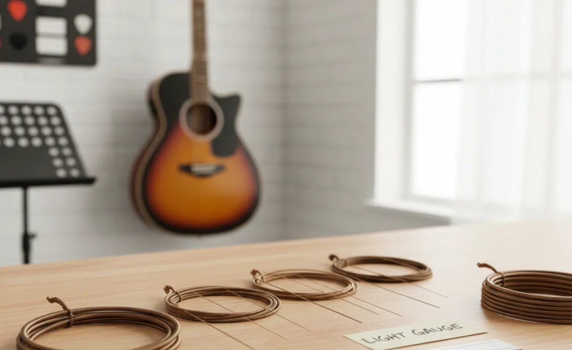 In summary, light gauge acoustic guitar strings are thinner and easier to play. They produce bright sounds, making them great for strumming. If you’re a beginner or prefer light touch, these strings suit you well. Try them out on your guitar! For more tips on choosing strings, check out beginner guitar guides or ask your music store for help.