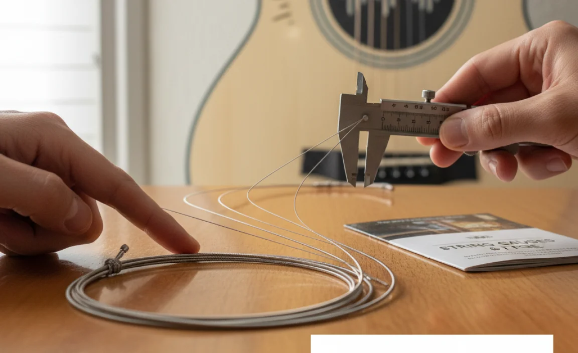 Light gauge acoustic guitar strings usually have sizes between .010 and .047 inches. The smallest string is the thinnest, often called the “first string.” The biggest string is the thickest, known as the “sixth string.” Many people like these strings because they are easier to press down. They sound nice and bright too!