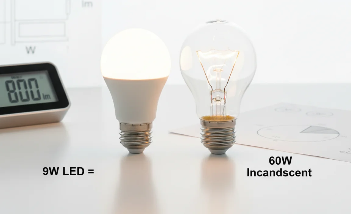 Switching to a 9 watt LED bulb is smart. LED bulbs use much less energy than incandescent ones. For example, a typical 60 watt incandescent bulb can be replaced by a 9 watt LED. This change saves you money on your electric bill while providing the same brightness. Here are some key points: