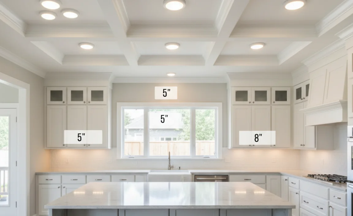 To pick the right size of recessed lights for your kitchen, look at your ceiling height. If your ceiling is 8 feet high, choose lights that are 4 inches wide. For taller ceilings, like 10 feet, 5- or 6-inch lights work better. This helps to make your kitchen bright and cozy!