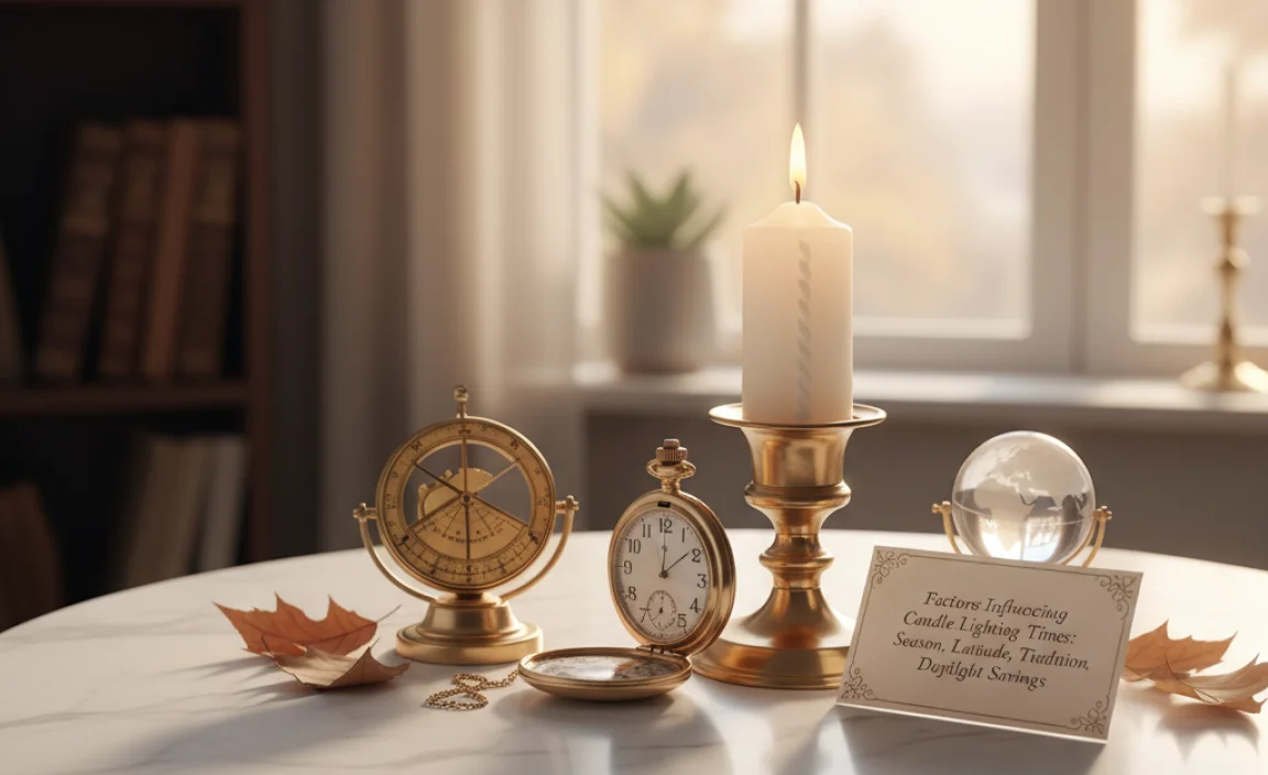 Candle lighting times depend on where you are and the current season. Sunset happens at different times based on location. For example, someone in Florida might see the sun set later than someone in Maine. Seasons also change our candle lighting times. In winter, it gets dark earlier, while summer days are longer. Daylight saving time can shift sunset by an hour. This means you might light candles earlier or later each season.