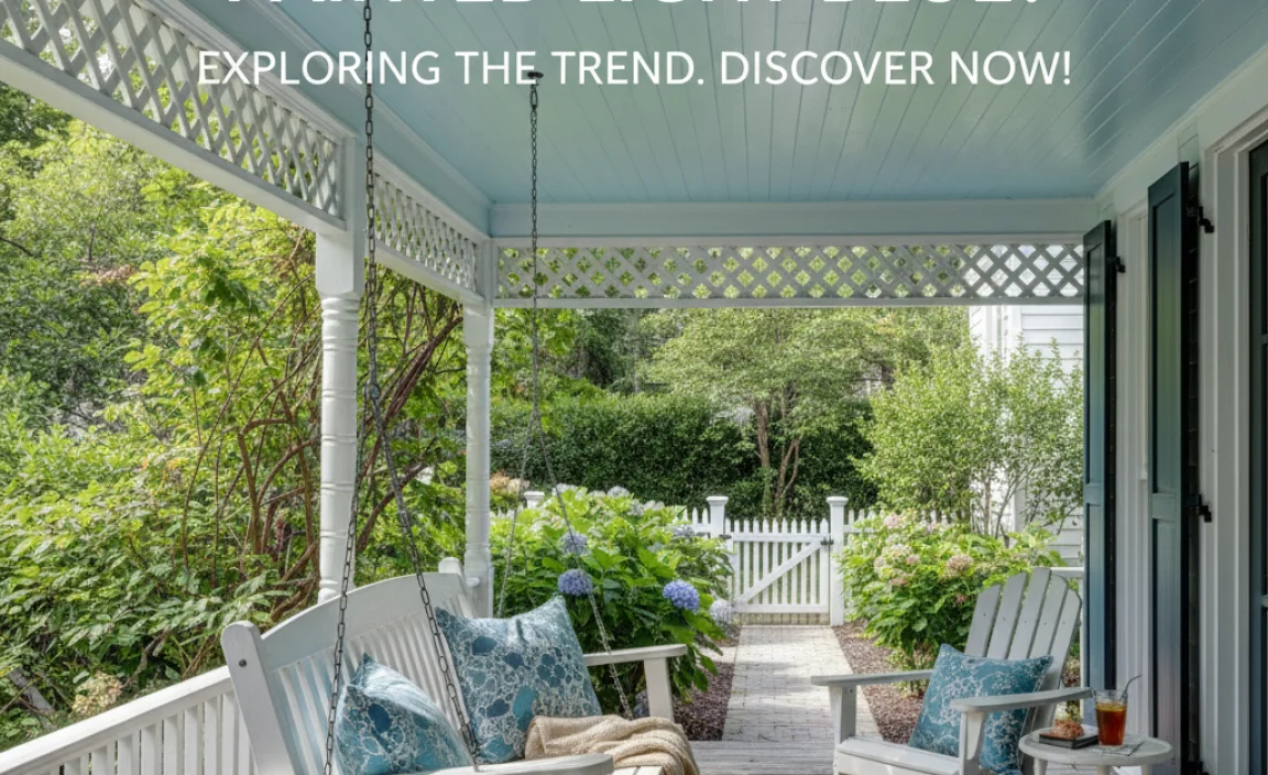 Some popular light blue shades for porch ceilings are “Sky Blue,” “Robin’s Egg Blue,” and “Pale Blue.” Sky Blue looks bright and cheerful, like a clear afternoon sky. Robin’s Egg Blue is softer and has more green in it, reminding you of a bird’s egg. Pale Blue is light and gentle, giving a calming feel. Each shade can change how your porch looks and feels!