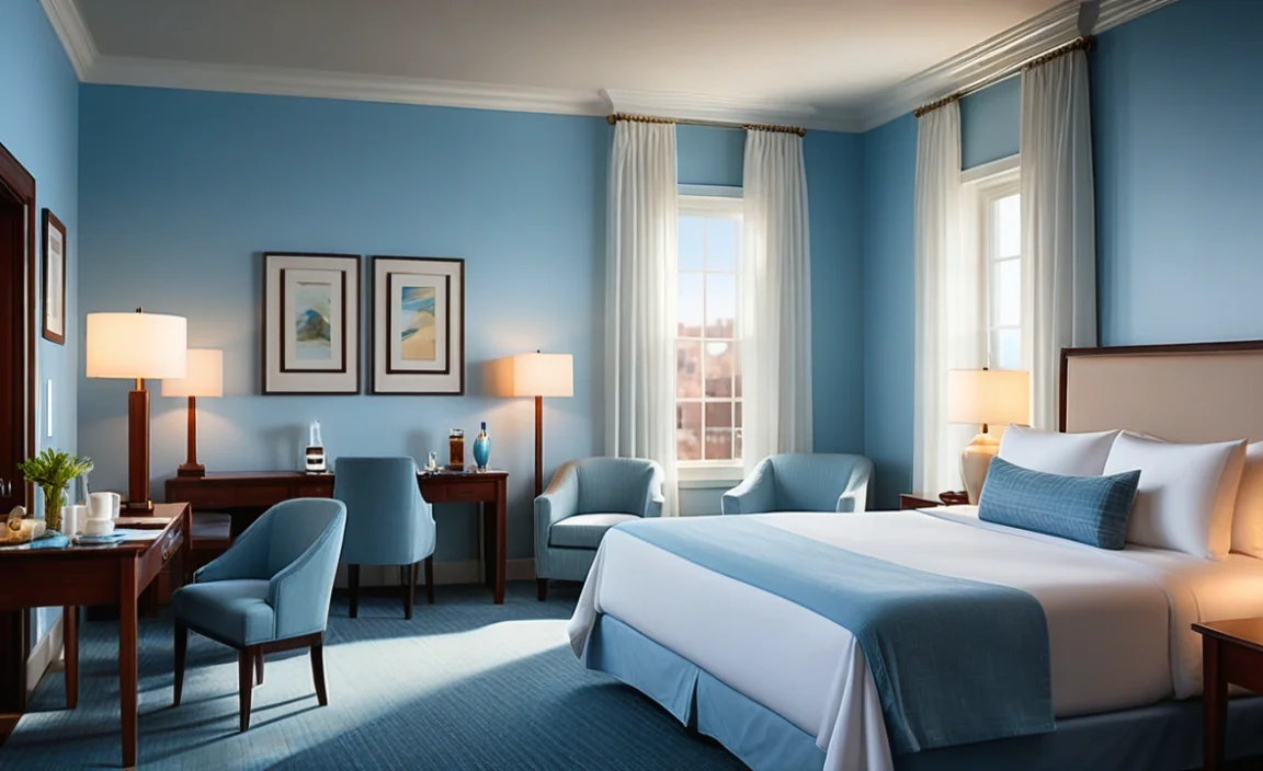 Light blue holds a special charm in design. It brings a sense of calm and relaxation. Imagine a sunny sky or a serene ocean—it’s refreshing! Compared to bold colors like red, which can feel intense, light blue soothes the senses. Studies show that cool colors attract the eye and promote peace. Just like a gentle hug from your favorite teddy bear! People often feel happier in light blue spaces, making it a perfect choice for hotels.